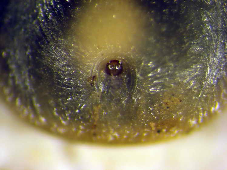 circles anus anteriorly, scutum has no eyes or ornamentation, festoons absent,