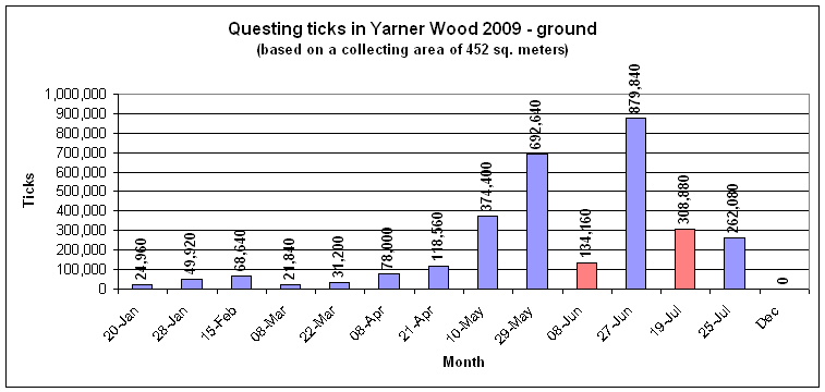 While the figures above are for "questing" ticks, there are probably more that are not questing and these are not represented in these figures, which are therefore an underestimate of the population.